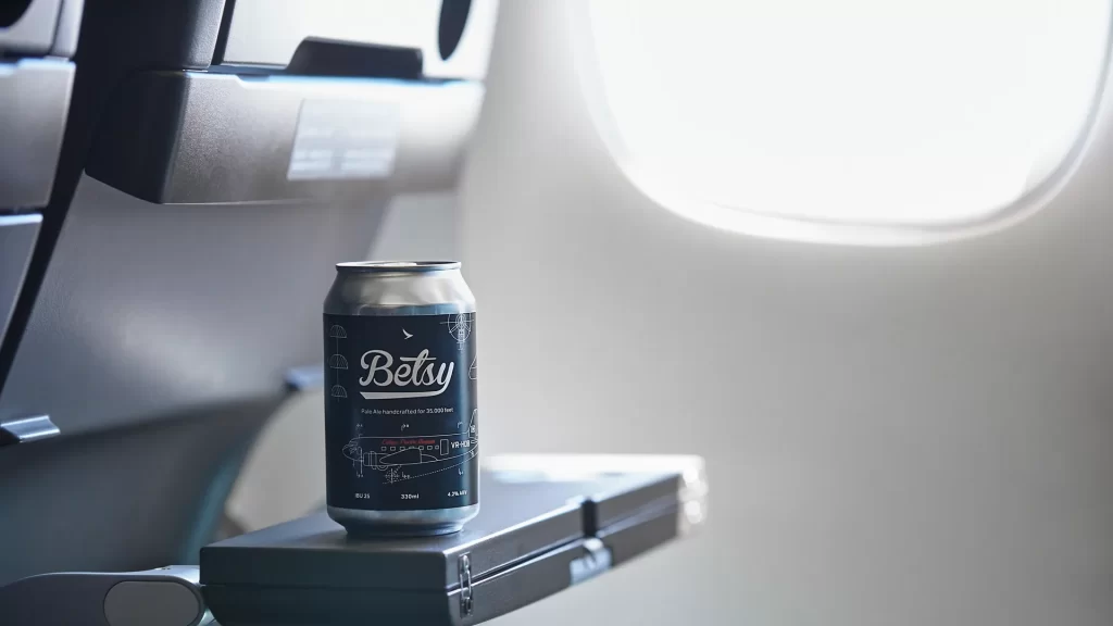 Sin embargo, hay quien se ha tomado la molestia de repensar hasta la última birra que te ofrecen; y ese alguien es Cathay Pacific. La cerveza se llama Betsy, y es la apuesta de la aerolínea hongkonesa por llevar el lujo a otro nivel, concretamente a 35.000 pies, es decir, a unos 10.700 metros de altitud.