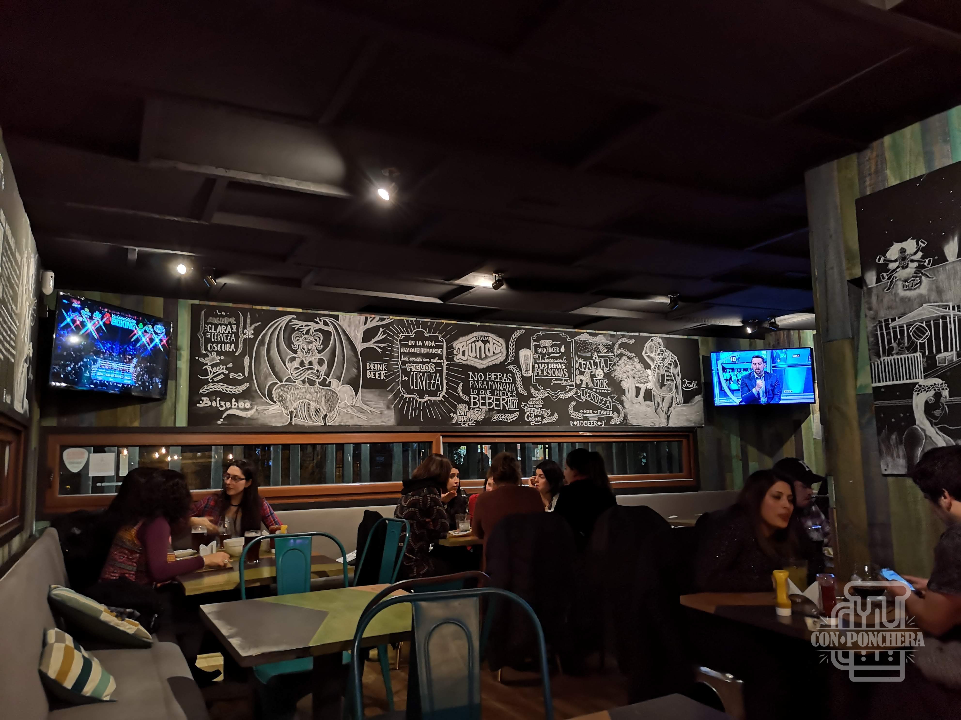 Lo primero que nos llama la atención de Bar Bundor es su decoración. Como fuimos en época de frío, se agradece la abundante presencia de estufas, en primer lugar. Pero también nos llama la atención que hay figuras de Troll y de Elfa tamaño real, donde puedes poner tu cara y tomarte una buena foto para el recuerdo. Ya adentro, se siente la mística del bar con una buena selección de artículos medievales, dibujos a mano en tiza de los seres mitológicos, mensajes y refranes alusivos a la cerveza. Destacar que también en un sector del bar hay unos sillones muy cómodos para quienes disfruten tomar chelita como en el living de su casa. En todo momento el rock clásico y el metal nos acompañan de fondo.