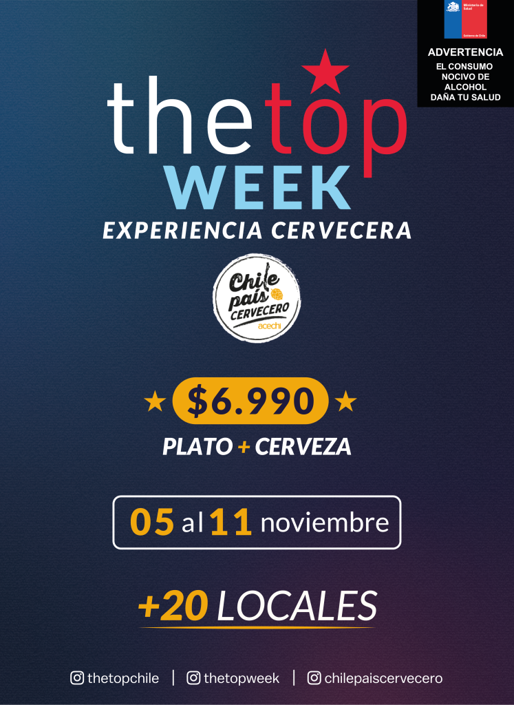 Chile País Cervecero y la reconocida plataforma gastronómica The Top, anuncian la primera edición de “The Top Week – Experiencia Cervecera 2025”, una inédita alianza que busca celebrar la cultura cervecera nacional a través de experiencias gastronómicas únicas.