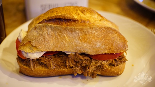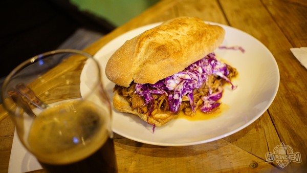 1.- Negra de Flandes – Baltic Porter. Una delicia. De perfiles tostados y achocolatados bastante potentes. En boca es de cuerpo medio, cremosa y de alta carbonatación. Los perfiles achocolatados explotan en todo su esplendor, añadiendo un sutil toque a café de grano y una pequeña carga lupulada para el final. Redonda, equilibrada y especial para maridar la chocolatería del local. La probamos con un Tiradito de cerdo: cerdo mechado cocinado por dos horas en negra de Flandes, merquén ancestral, ketchup a la Belgian y varios secretos más. Servido en pan ciabatta artesanal junto con repollo morado con limoneta con mayo casera.